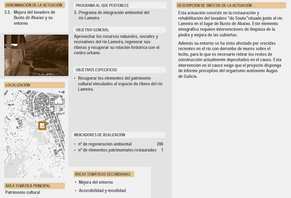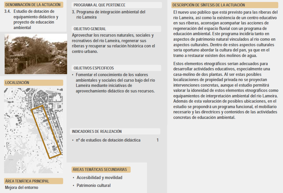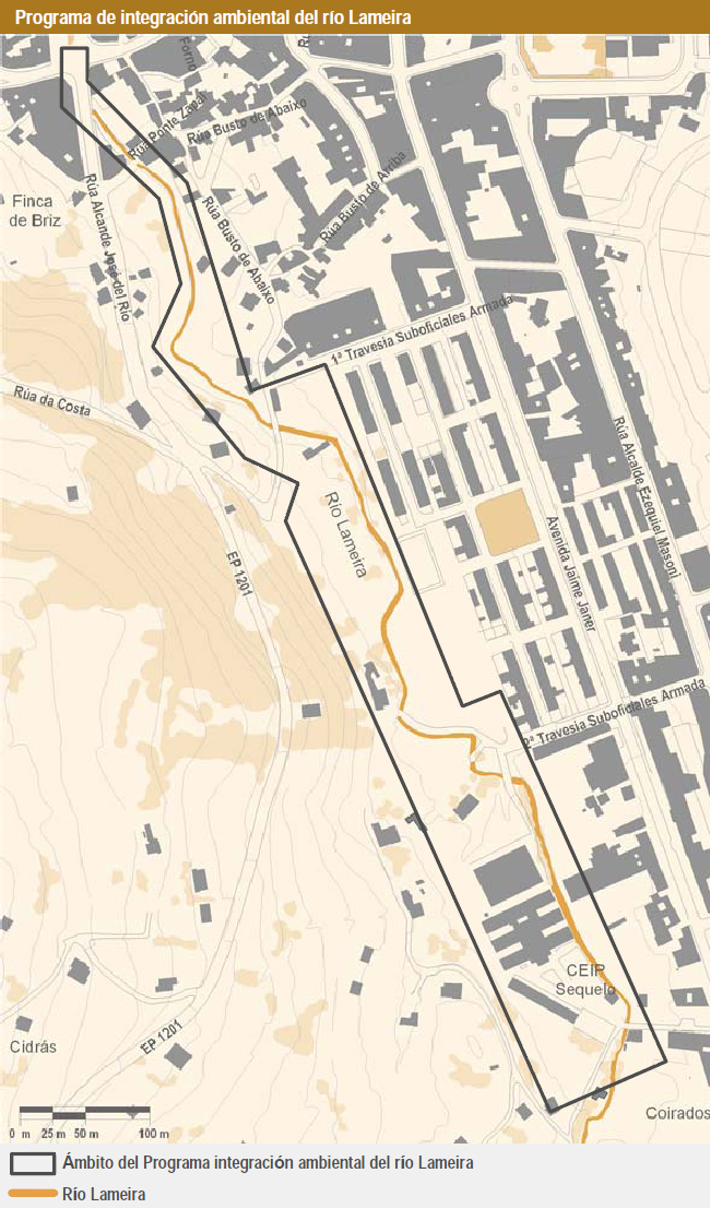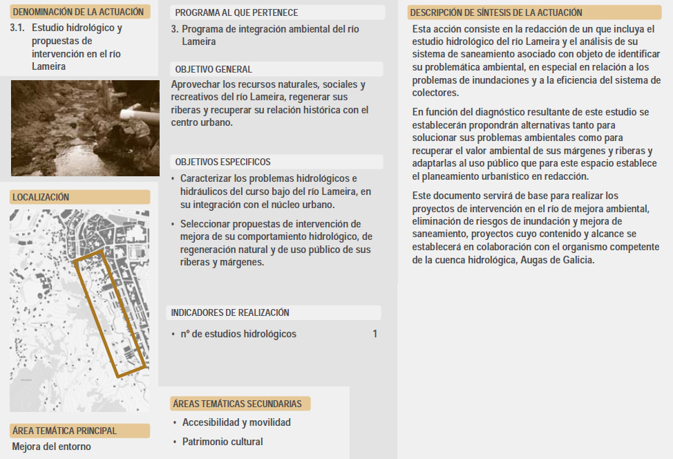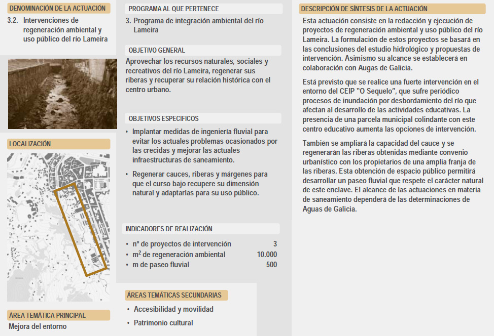 El Programa de integración ambiental del río Lameira comprende actuaciones clave dentro de este proyecto de regeneración urbana. Las calles de la ciudad vieja se acercan hasta Ponte Zapal, por lo que a escasos 300 metros de la céntrica iglesia del Priorato, y a través de un recorrido de calles enlosadas, el río Lameira se presenta como un recurso ambiental de gran calidad natural y una enorme potencialidad como espacio abierto de gran valor natural y social, muy próximo al núcleo histórico y que discurre al lado de la zona urbana que marca el crecimiento del nuevo Marín.
